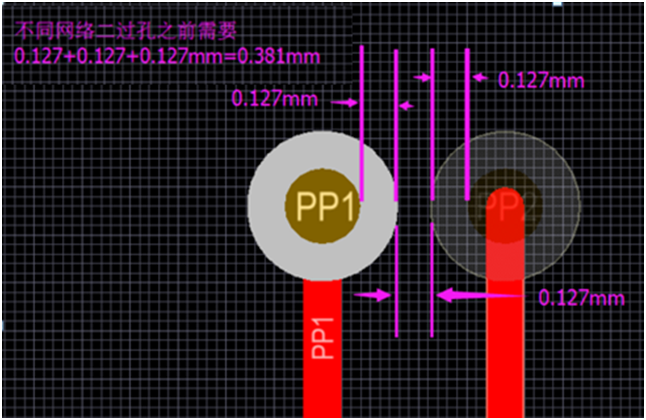 1.6mm板厚,4层板,要求顶层和底层铜厚2 OZ,同一网络中过孔与焊盘以及过孔与过孔之间的最小间距有要求吗?