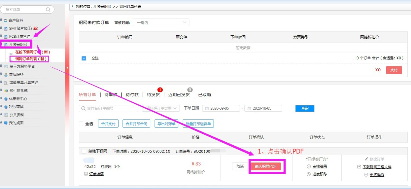 您好,钢网PDF需要付款过后,一个钟左右,在钢网订单列表里面下载确认哈