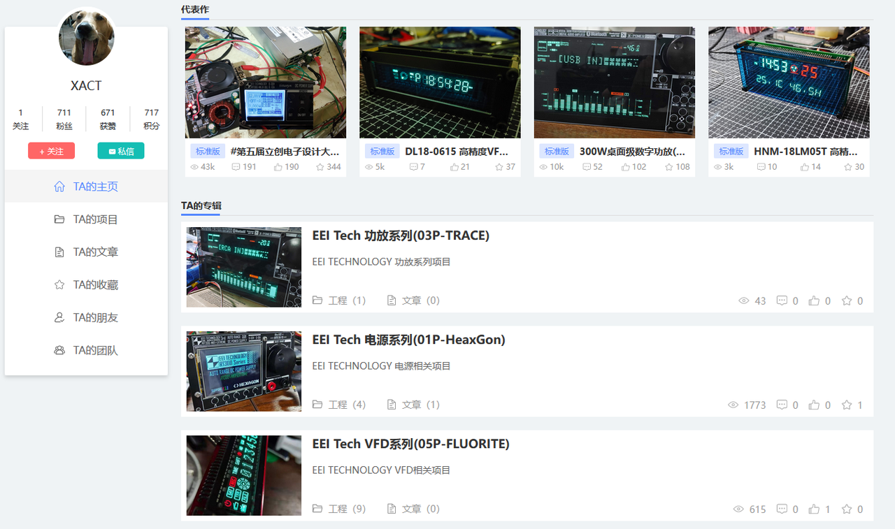 每个人都在自己擅长的专业领域,闪闪发光!立创开源硬件平台为开源作者打造的个人名片,它不可复制,无法替代,让你可以随时随地,尽情地展现自己!